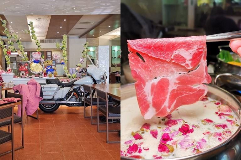 玫瑰鮮奶鍋 $305,灑上滿滿的玫瑰花瓣超浪漫,淡淡的玫瑰香氣散發在空氣中,猶如置身花園般令人著迷。
