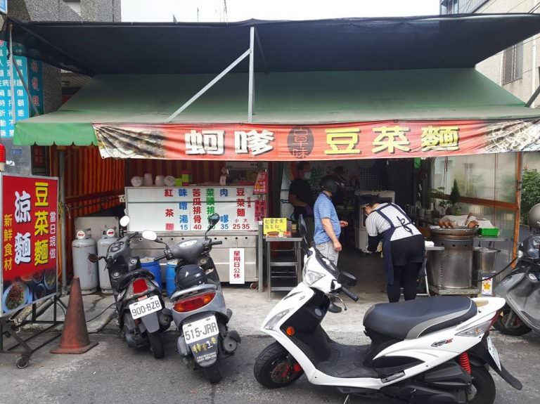 在地人的私房早餐,一碗豆菜麵配一碗湯的完美。黃家古早味肉嗲豆菜麵位在台南歸仁民族南街上,用鐵皮屋搭構,外觀看起來低調不起眼,賣的是臺南簡單的一種平民美食,早上六點就開賣,每天顧客絡繹不絕!