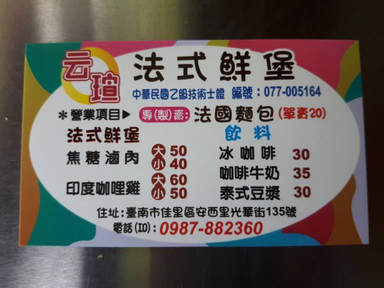 【台南 佳里】云瑄法式鮮堡。越式法國麵包餡料口感層次豐,加入咖喱雞蹦出新滋味